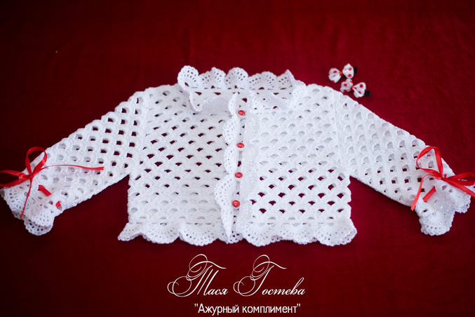 Хочу показать один из моих любимых заказов. Идея не моя, немного видоизменила и получилась вот такая кофточка. На фото размер на 1-2 годика.
