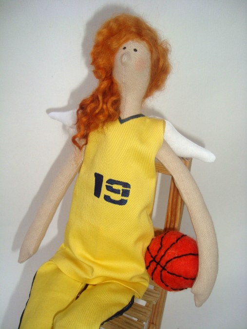 Вот такой интересный заказ*) Сшилась кукла очень быстро, дольше я думала над мячем, в итоге пришла мысль свалять из шерсти, кеды тоже шила впервые, интересненько*) теперь есть опыт*)