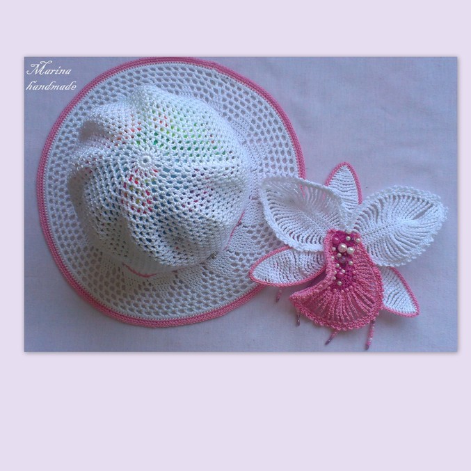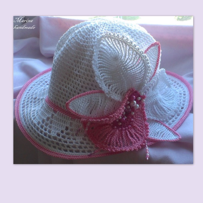 Вот и я, насмотревшись на Олины замечательные шляпки, связала для своей постоянной заказчицы такую. Ниточки ROSE хлопок, очень подходит для шляпок, прекрасно держит форму в вязке!!! И цветок вязала из них же, поэтому вышел шикарных размеров. Шляпка уже уехала к своей хозяйке, надеюсь, что ей понравится.