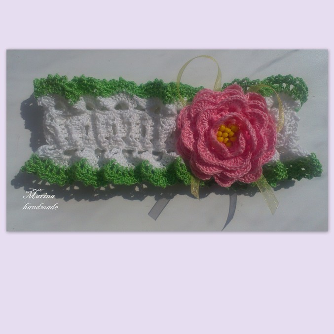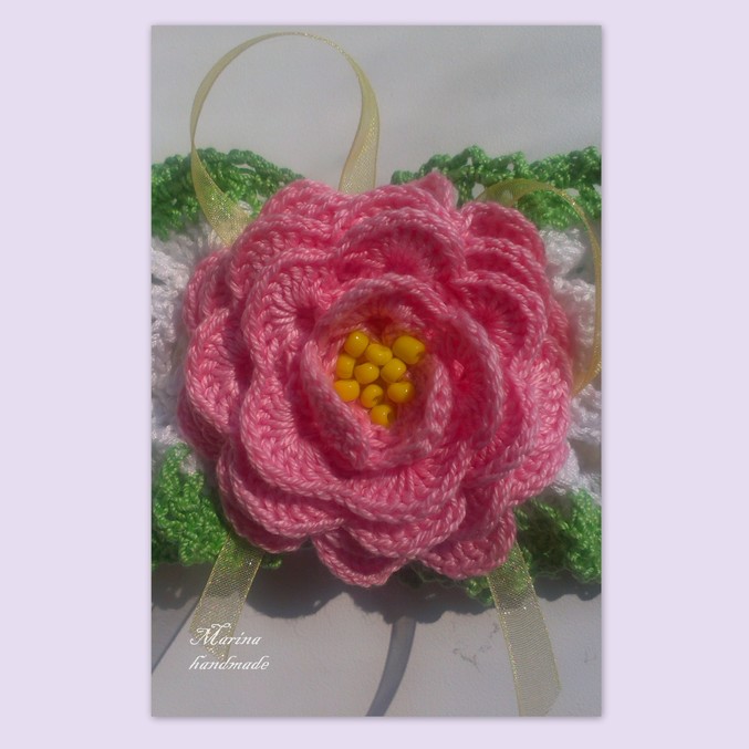 И в подарочек для дочки заказчицы связала вот такую повязочку с розочкой.