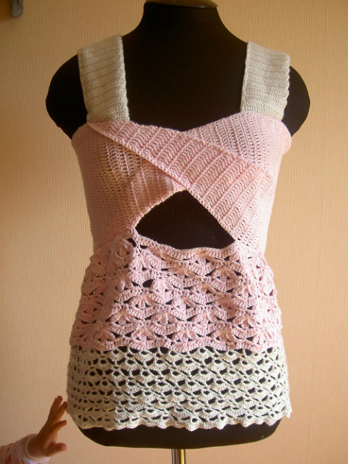 Номер четыре: Топик с перехлестом на груди. У манекена живот плоский, поэтому топик предательски фалдит в районе живота ))