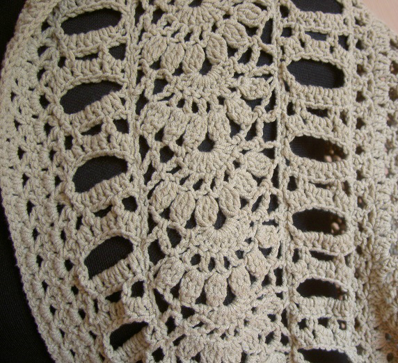 Номер два: Шарф-болеро, как я его называю. Связала из Джинса, по-моему, пряжа идеальна для этой модели.