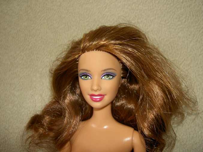 А это - мммм! Это моя будущая Скарлетт О'Хара. Я нашла-таки куклу с каштановыми волосами и зелеными глазами. Приехала она ко мне из Питера. Теперь вот потихоньку буду недовязы заканчивать и начинать вязать знаменитое зеленое платье из гардин.