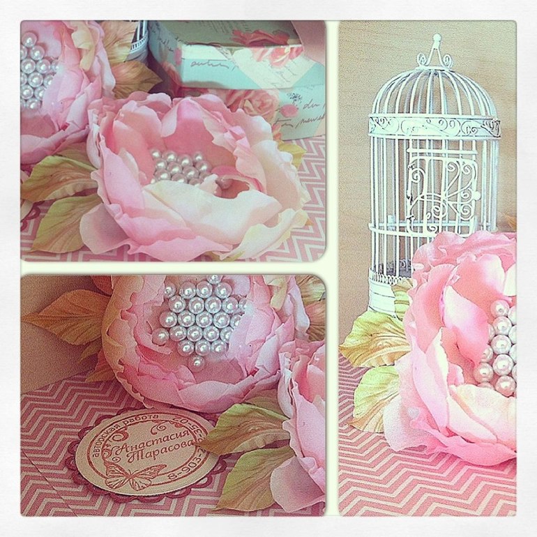 Фантазийные цветы с жемчужной серединкой, выкройку рисовала сама.