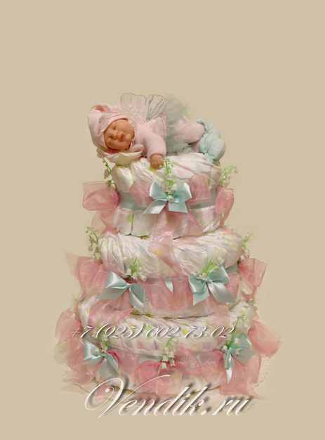 Торт из памперсов "Сладкий сон" - подарок на рождение девочки.