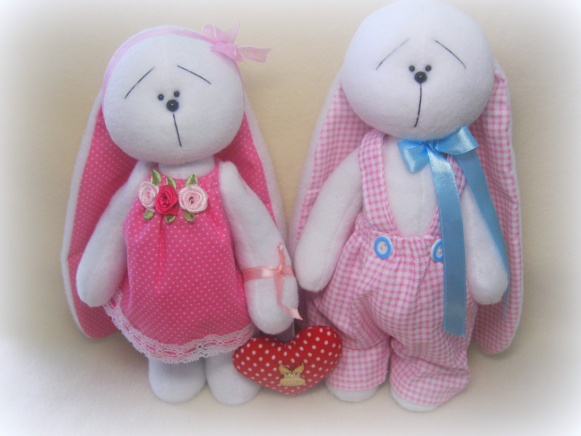 Девочки,хвастаюсь)))Это мой первый заказ на ярмарке мастеров!!!УРА!!!!Заказали зайчат в розовом для интерьера.
