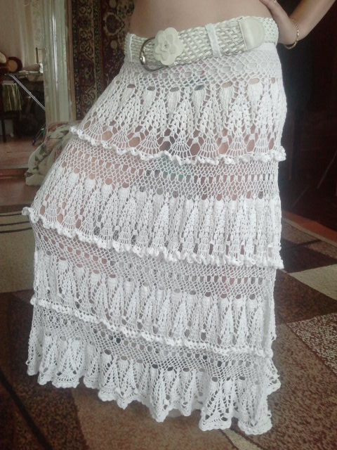 мне тоже нравится до пола)))Я знала,что она вытянется,поэтому не переживала особо,хотя сначала думала,что мне на мой рост придется 5 ярусов вязать,а не 4! Спасибо)))))