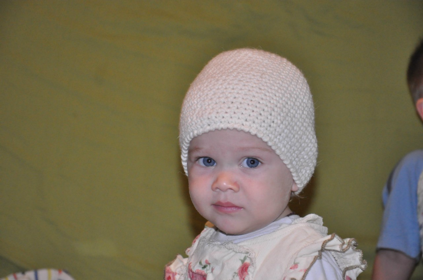 хе хе. про шапочку -к тебе такая едет) ты просила белую без излишеств для брошки ну вот я сделала. потом твою померила...думаю надо женькк