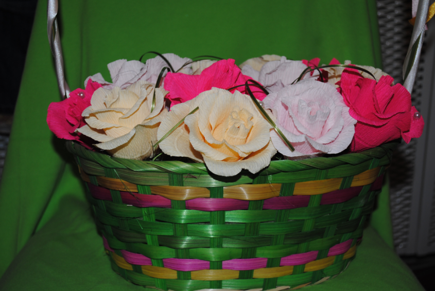 Корзинка не плохая, розы красивые. (но не хватает высоты и объема в работе. )