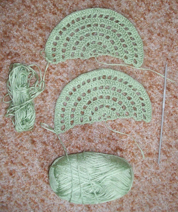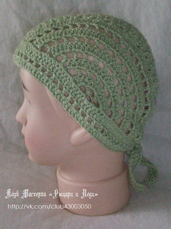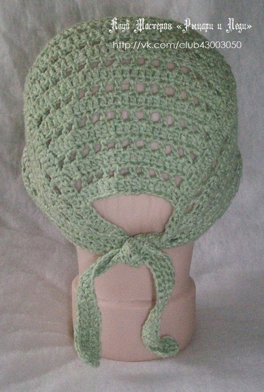 В конце - набирала цепочку из воздушный петель (на длину завязки) и продолжала обвязку банданы по низу - 3 ряда столбиков с накидом: