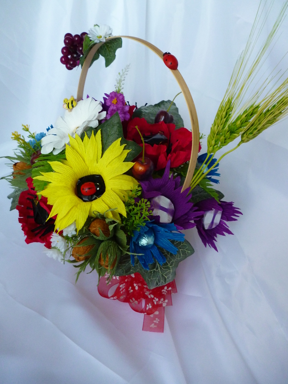 Букеты из конфет. Свитдизайн.Девочки,всем привет! люблю летние цвета и цветы,очень. Сделала летнюю корзиночку под настроение. На ваш суд: