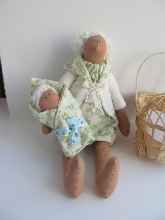 Вот такая куколка почти дважды мамочка сшита в подарок одной приятельнице. Она любит зеленый цвет и очень хочет детишек, блондиночка. Вот все это и сложилось в такой образ. нежный-нежный. в субботу вручу ей подарочек этот с бонусами сладкими )