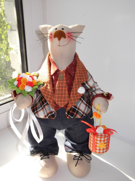 В набор входит ткань для шитья игрушки с нанесенным контуром (выкройка бумажная), ткань для одежды (американский или японский хлопок, шерсть или лен). Инструкция пошаговая. МК в фото .Вам необходимо аккуратно вырезать детали, сшить их и набить игрушку наполнителем. Всё не так уж сложно. Наполнитель в набор не входит. Для наполнителя рекомендуем синтетическое волокно "Холлофайбер" . Это качественный и экологически чистый материал для наполнения игрушек, одежды,подушек и одеял. Размер готовой игрушки 31-32 см .