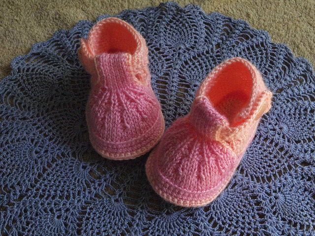 Вот еще нашла по ним жеПодошва-крючок(стандарт,часто печатается в группах по вязанию)Далее 3-2 ряда столбиками без накида. прямо по краю подошвы.Потом вяжете на спицах. Делите работу на2части и вяжете отдельно носок (резинкой1 изн -5 лиц,через каждые 4 ряда убавляете по краям по 2 петли, а также в месте , где изн -3 петли вместе) пятку (лицевыми) ремешок для застёжки - крючок. В конце сшиваете обе части приблизительно1,5 - 2 см от подошвы.