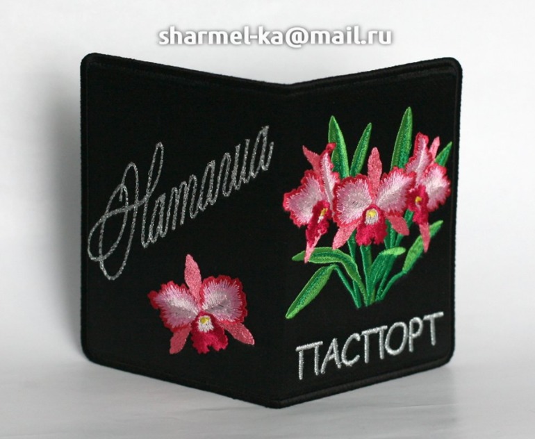 Вышитая обложка на паспорт "Орхидеи" (08.07)