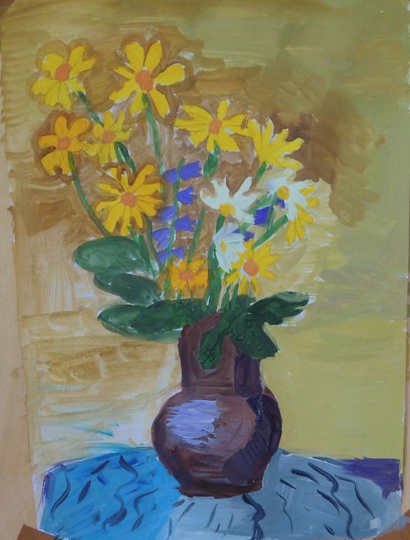Натюрморт супер! всем бы таких натюрмортов, первых. Да еше с натуры ... Здесь и обьем вазы и такие живописные цветы ( всмысле передача цвета) Конечно вам рости и рости.Я за вас рада , я просто поклонница искасства.