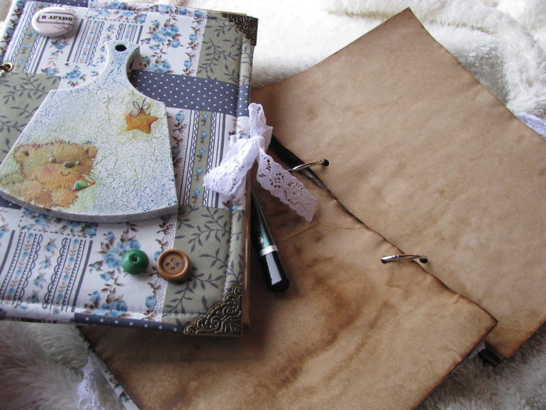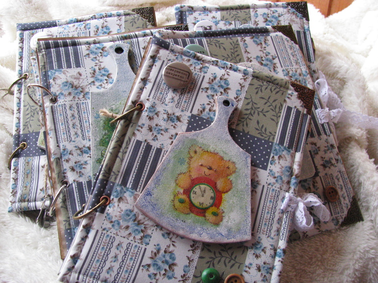 а вот что у меня получилось. для лицевой странички задекупажила досточки. листы запекала в духовке, чтобы быстрее высохли. а вообще намаялась, столько магазинов объездила, искала детали, две выставки хенд-мейдные даже посетила! ))) спасибо за идею!