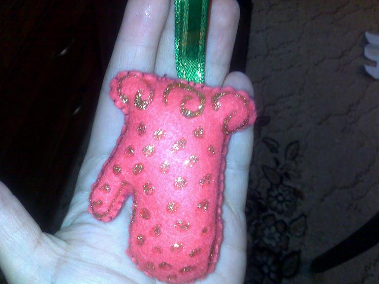 мне проект очень нравится! Во-первых, я впервые попробовала новый материал для себя - фетр. Давно собиралась, но все как-то не получалось: то времени не находила, то идей интересных нет! А тут как раз отличная идея - игрушки на елочку. Учитывая, что у меня годовалый малыш, самое то!) Во-вторых, полностью согласна с Юлией - это "волшебный пендель"))) Очень стимулирует меня) Сама, даже если бы взялась за пошив, то только в декабре, недели за две до нового года) И, естественно, все бы не успела. Ну и в-третьих, некоторые работы очень вдохновляют! Вот например, решила тоже попробовать вышивку на фетре (как делали другие участницы). Что сказать, трудно на фетре вышивать крестиком, но вроде ничего получилось)) Вот мои варежки: