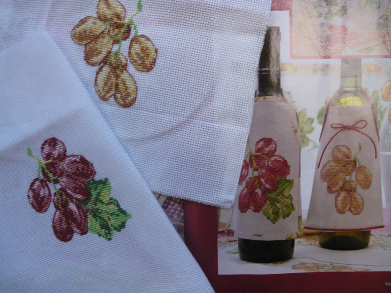 Класс!!! Я вышила для красного и белого вина, осталось только бейкой обшить)))