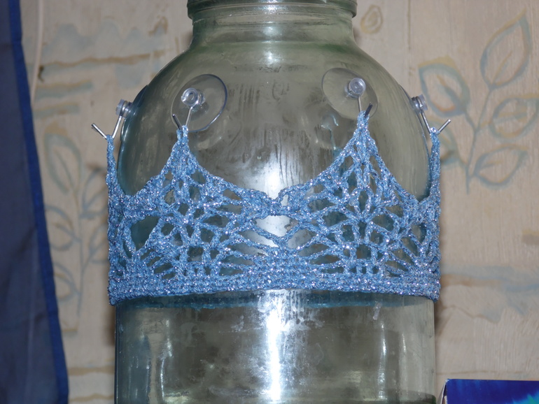 на банку натягивала  и все вершины на крючки цепляла и растягивала  что б остренькие вершины были оставляла на сутки и все