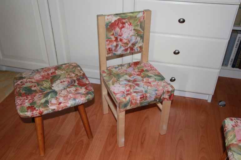 Планирую пошкурить и покрасить стульчик и ножки табуреток в белый цвет, т.к. вся мебель в комнате белая.