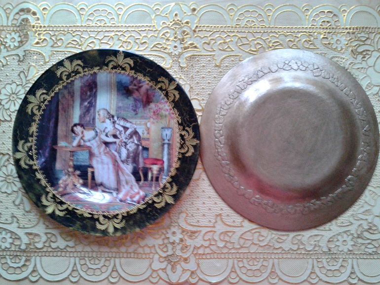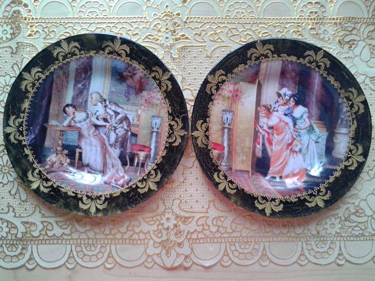 ДекупажФото делала в темноте и на скорую руку. А еще вопрос: слишком большая разница в цвете между тарелками? В старом принтере сдохли картриджи, а так как я давно мечтала о лазернике муж мне его купил и соответственно распечатка "парочки" делалась на л/п соответственно цветопередача другая. Сильно заметно?