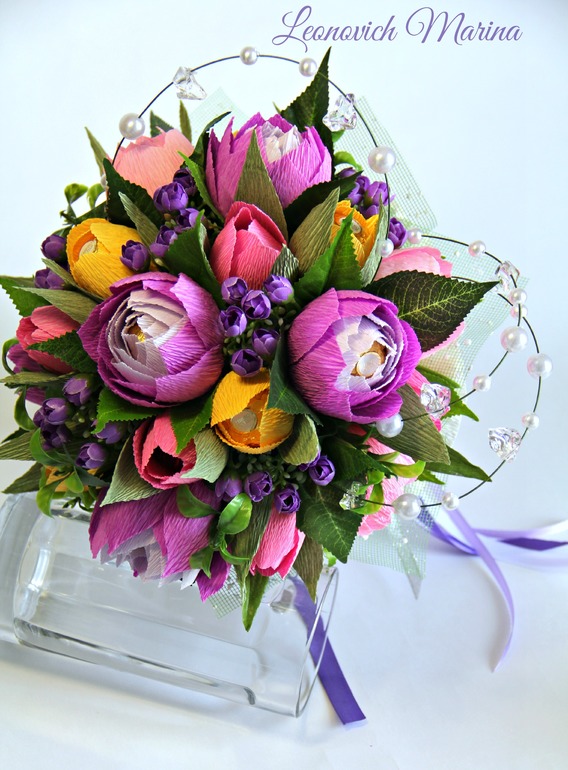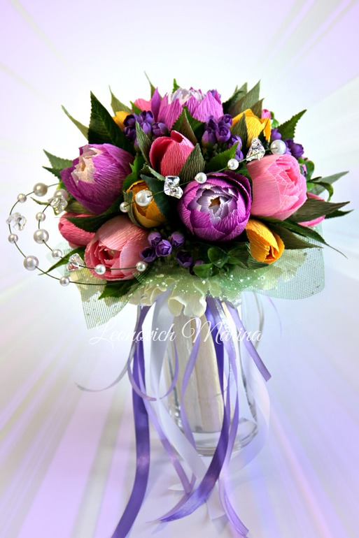 Всем добрый вечер! Решила показать вам букетик, который я сделала за ночь и с которым я намучалась как никогда))) А всему виной стал пистолет, мой друг и помошник...подвёл((((