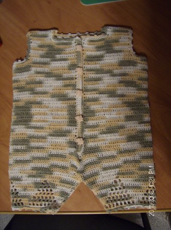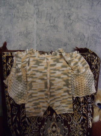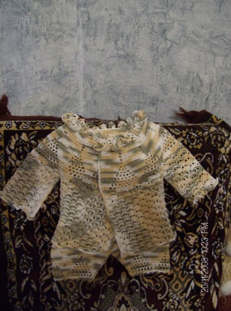 Я тоже нарыла этот костюм на просторах интернета...очень нравится, только боюсь начинать - опыта вязания крючком маловато, связала только шапочку, пинетки, а сегодня мишку.Так вот, хотела спросить - этот костюмчик сложно вязать?