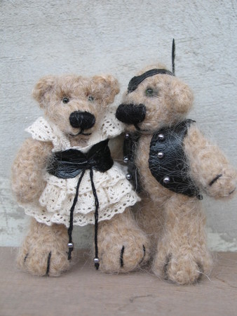 Они должны были быть принцем и принцессой, но.. жизньдиктует условия, в самый ответственный момент потеряялся глаз...(( Так на свет появились Пират и его дама Черный Джек и Прекрасная Агнесса, совсем не кровожадны и не злы, ведь в душе они принц и принцесса. 10см, шерсть, иск. кожа, кружево, синтепух, стеклянные глазки сделаны вручную, акриловая краска.