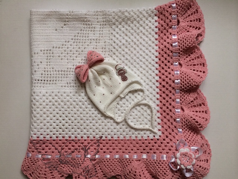 Связала вот такой пледик и шапочку.Здесь на ББ уже такой был,только в изумрудном цвете,это моя подружка Леночка,решили мы с ней вместе связать такое чудо.