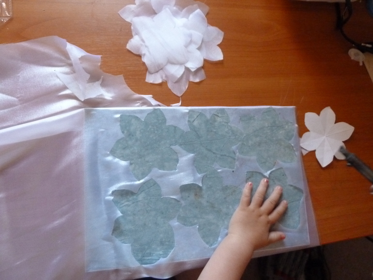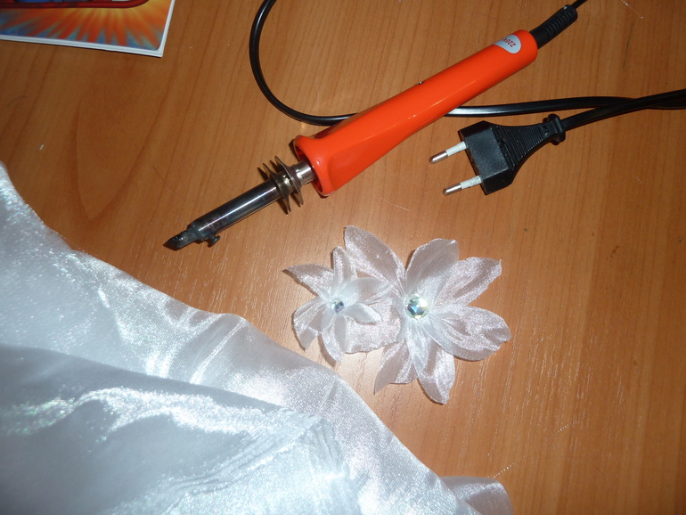 Ну и взялась за украшение... цветы 2-х размеров из кристалона