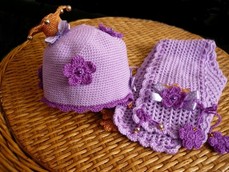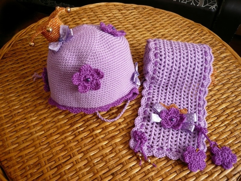 Разок попробовала - не получилось, на шапочке корона была слишком большая, так и лежит эта шапко, ждет у моря погоды. А тут одна бб-шечка зимой как давай нам показывать красоту с коронами, да одну за другой. Сидела я, сидела - думу думала и решила, что надо тренироваться. Так и получился комплектик весенний (ага, фотки я как всегда зажилила )) ).