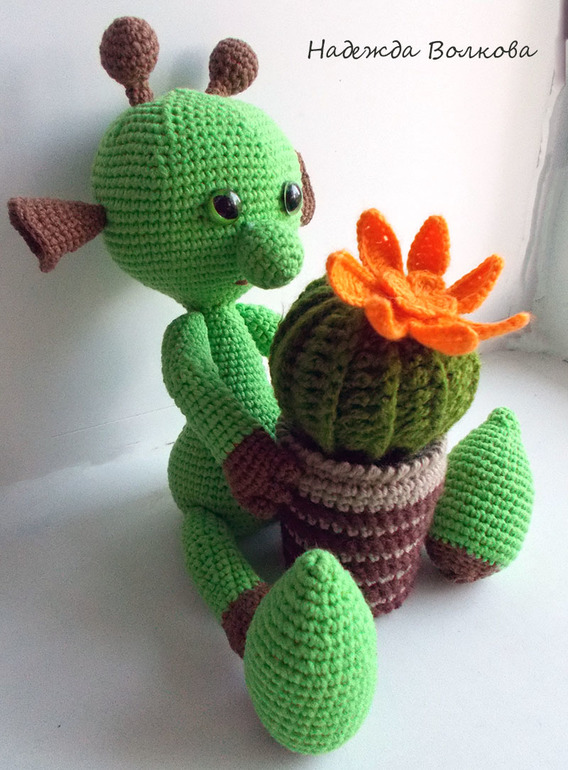 Наденька гуманоша просто очаровашка))) такой себе зелёный позитивчик)))Кактусёныш хорош — радует глаз — всегда цветёт и поливать не нужно)))п.с. спасибки за идейку, пошла гуглить инет в поисках схемок разных чудиков))
