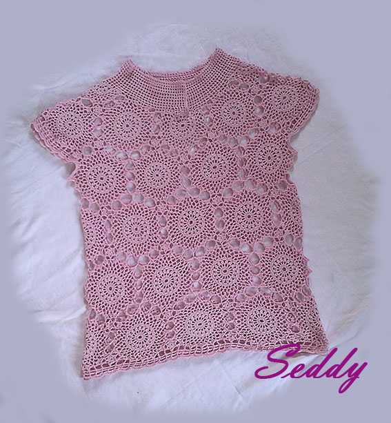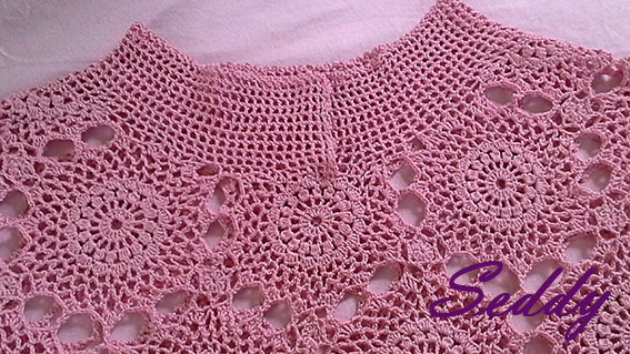 решено, и взялась за дело, два дня мучила этот мотив, то фалдило сильно, то не рассчитала петли, должно в итоге у круга быть 16 лепестков, а у меня то 14, то 15)))
