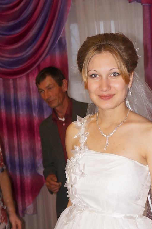 Очень здорово, на самом деле не видно, что 25)) У кого как, а у меня в 25 было такое пузо, что его никак не замаскировать. А тут все очень аккуратненько))) Единственное, жалко, что у невесты украшения такие дешевые....