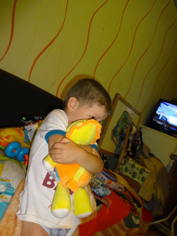 Транспорт Васин любимый! И мишка-друг тоже со своей машинкой!