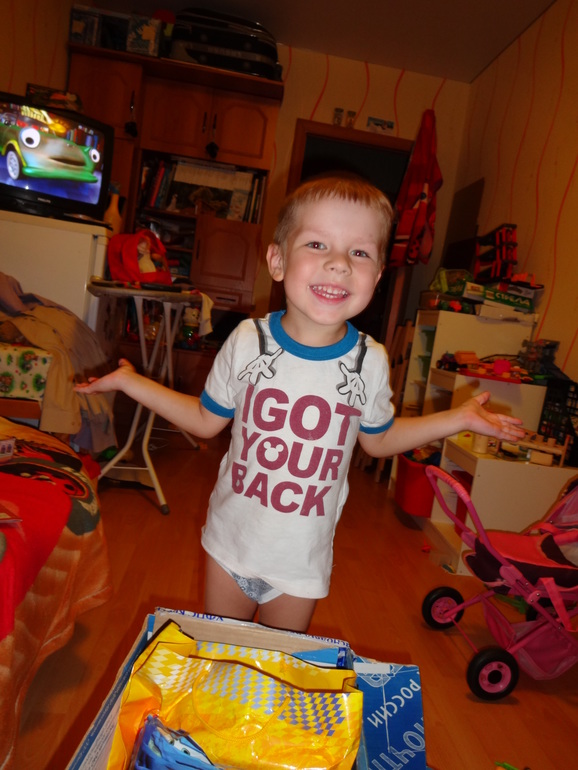 Класс, новые труселя с полицией! (имелись в виду шортики с машинками :)))