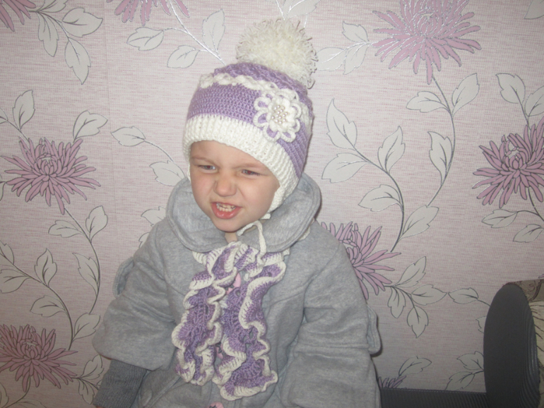 спасибо) шапочка тут http://tanyusha100.ru/post293267063/ , а шарфик самый обычный ажурный, по запросу "Ажурный шарф крючком" всегда одну схему выдает поисковик, я всегда по ней вяжу