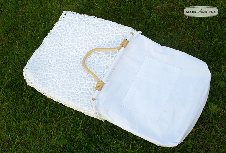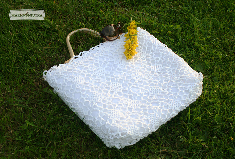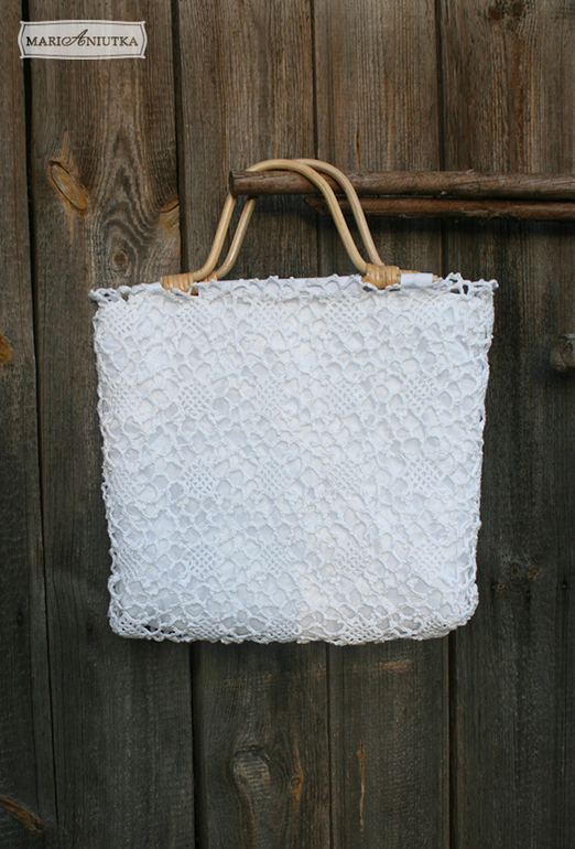 У этой сумки очень интересная история создания. В классе седьмом-восьмом я решила, что хватит уже вязать салфеточки-воротнички - пора сотворить что-то масштабное. И начала вязать себе топ из мотивов, что уж тут мелочиться) Топ связала, подклад сшила и ходила вся такая красивая по родной деревне.