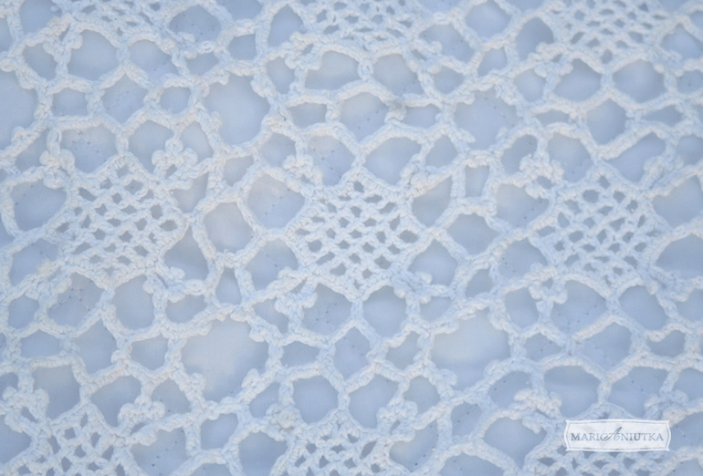 Пряжа тоже с историей. Сколько ей лет - сказать точно сейчас никто не может, но учитывая, что её покупала ещё моя бабушка, то полсотни точно будет. Винтажная пряжа, в общем) По составу, я думаю, что это хлопок, правда, ниточка неравномерной толщины, поэтому вязка выглядит немного небрежной, но в этом тоже есть своя прелесть.