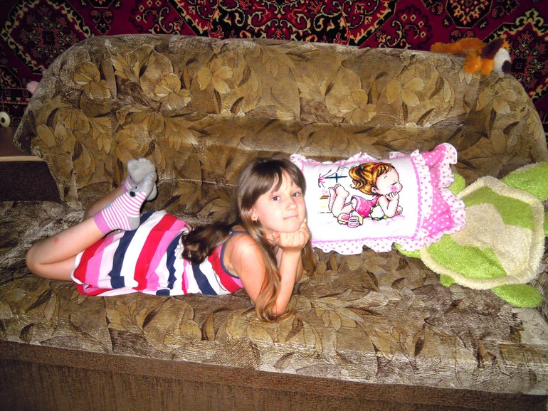 О, да! Алиска ее очень полюбила. Если честно, пока не одели наволочку на подушку было вообще не понятно, нравится, не нравится. А сделали все как надо и работа ожила )))Тканюшка очень приятная и ничего не полиняло, хотя я боялась. Так что лично я результатом давольна.