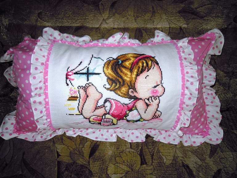 Очень симпотичная и такая по девчачьи — девчачья подушка получилась:)))