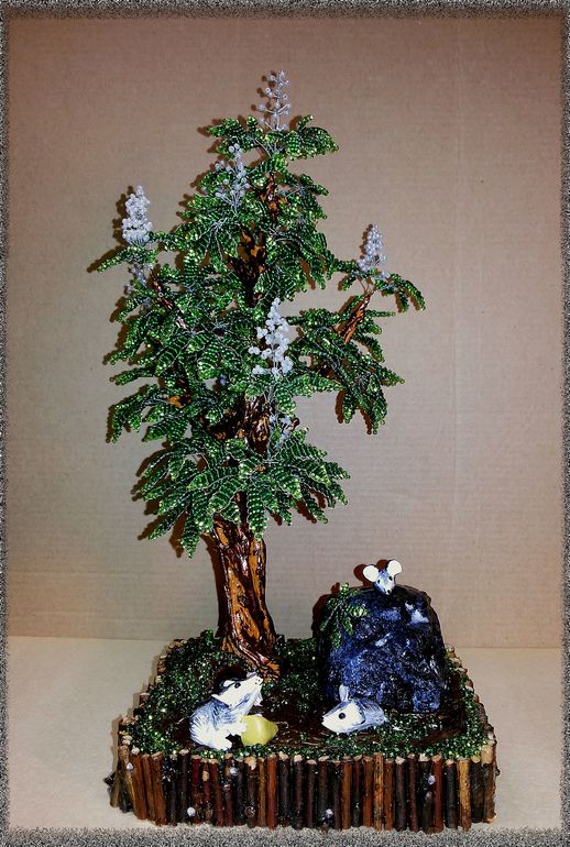 Честно — это и еще завтра-послезавтра выложу — рождались ооочень долго, почти год. Куда-то подевалось вдохновение — и все. А так... Такой каштан, если только дерево брать, без мышей и дополнений, просто — дерево на подставке — ну что-то типа дней за 4-5 можно сделать, а размером поменьше — за пару дней...