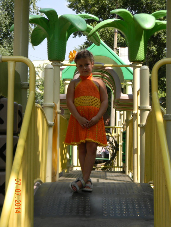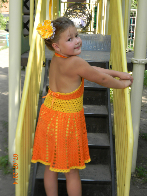Старшая дочка давно уговаривала меня связать ей с сестренкой одинаковые платья. И вот, в результате связались два платья , по мотивам платья "Романтичная барышня" от Пуси. Для старшей изменила верх, а для младшей совсем немного изменила юбочку, чтобы можно было носить без подклада.