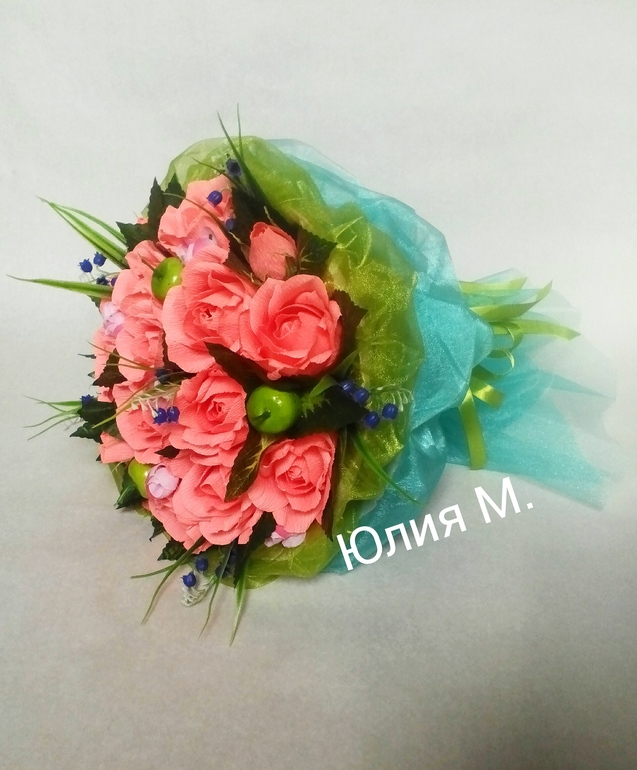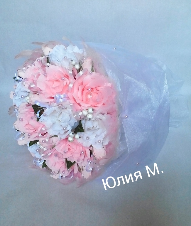 Юленька, привет! Какие красивые букеты! Первый ванильно-клубничный прямо, а второй, розы очень классные и сочетание цветов интересное и с двумя каркасами (если правильно поняла))) очень здорово!