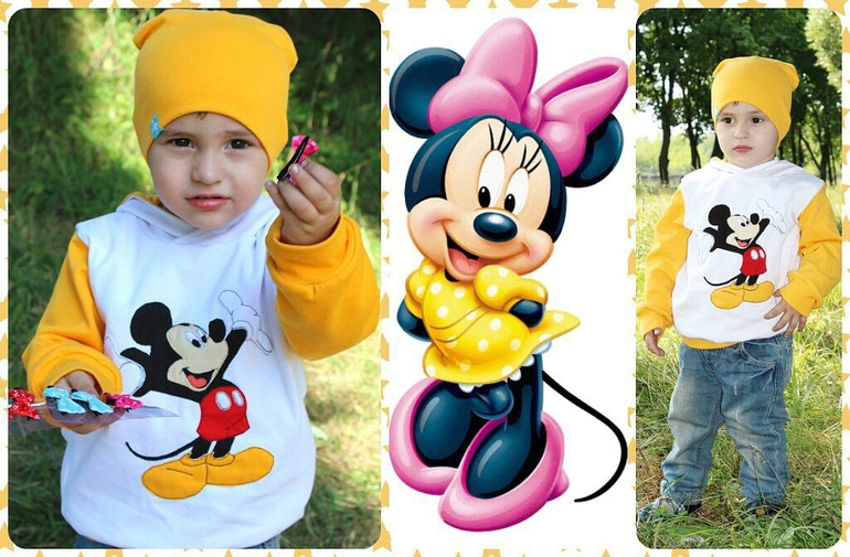 Недавно сшила для Ромочки толстовку. Уже примерили. Рома не хочет с ней расставаться. Уж больно ему МИККИ МАУС понравился))))
