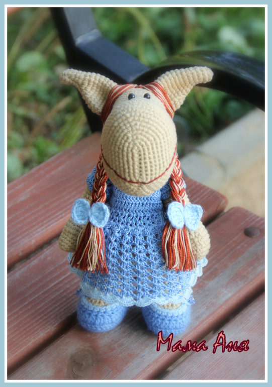 У всех девочек-рукодельниц лошадки вязались или шились к Новому году, а у меня немного задержался этот процесс. Я всё хотела сшить символ 2014 года, но... то настроения не было, то времени. А тут прямо руки сами потянулись к крючку. В общем прошу любить и жаловать моя лошадка Глаша.