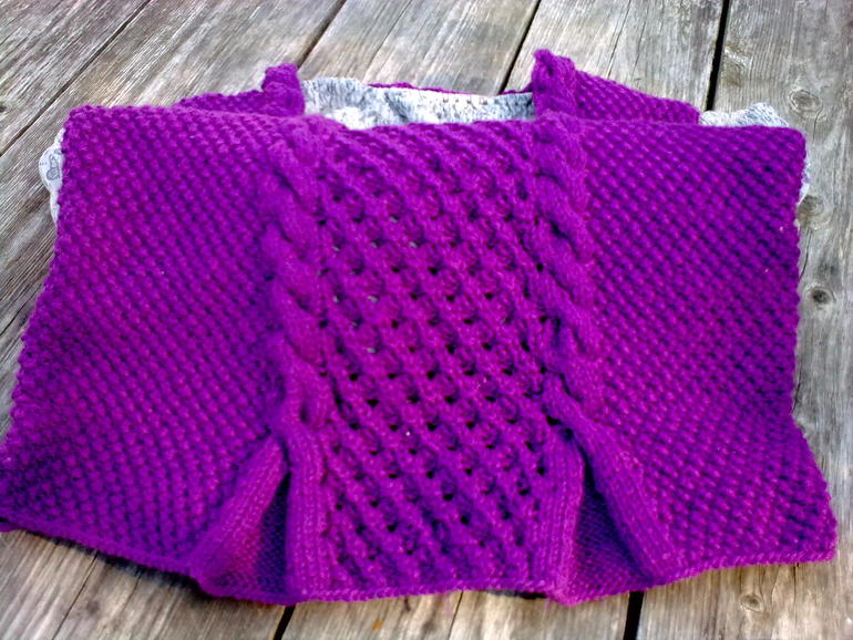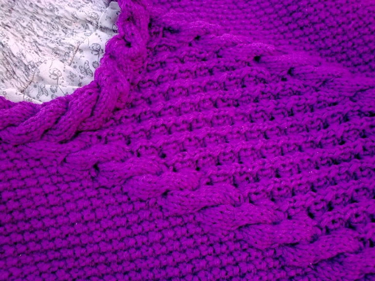 Спасибо!)) Коса-годе, уменьшается количество изнаночных петель — в нечётных лицевых рядах две крайние изнаночные петли с обеих сторон провязывать вместе изнаночной. В итоге все изнаночные петли закрываются.