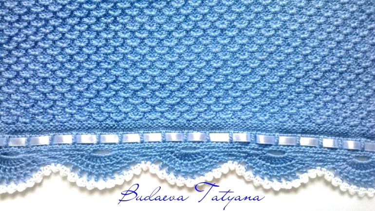 Спасибо!Сильвер,но 840. Размер получился 80х95. Набирала 95-0-95,рядов 500 провязано.Ой,это вам нужна очень широкая кайма,моя 5 сантиметров вместе с рядом для ленточки. Попробуйте вначале постирать плед,может он растянется.