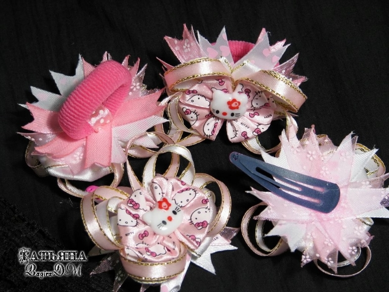 А это маленький наборчик на ту же тему) Маленькие и аккуратненькие, длинна - 6,5 см, две на резиночках и две на заколочках клик-клак.
